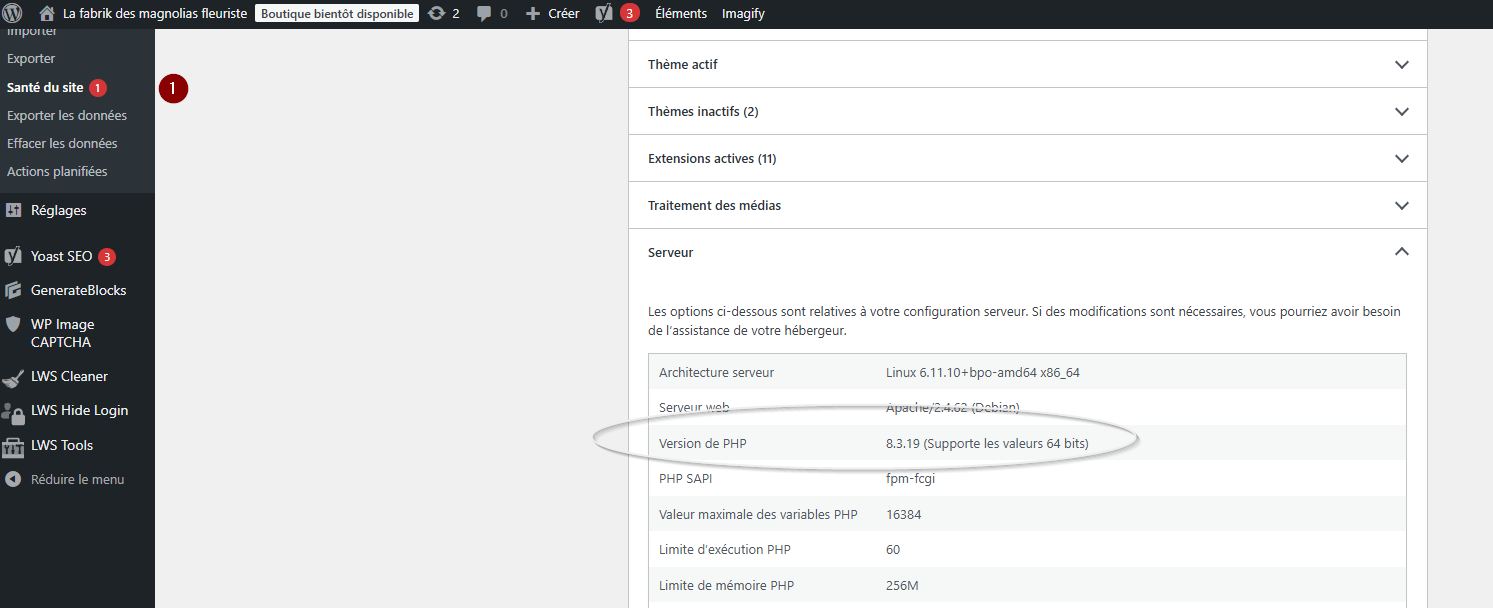 Pour connaître les informations de votre serveur dans WordPress, vous avez plusieurs méthodes :